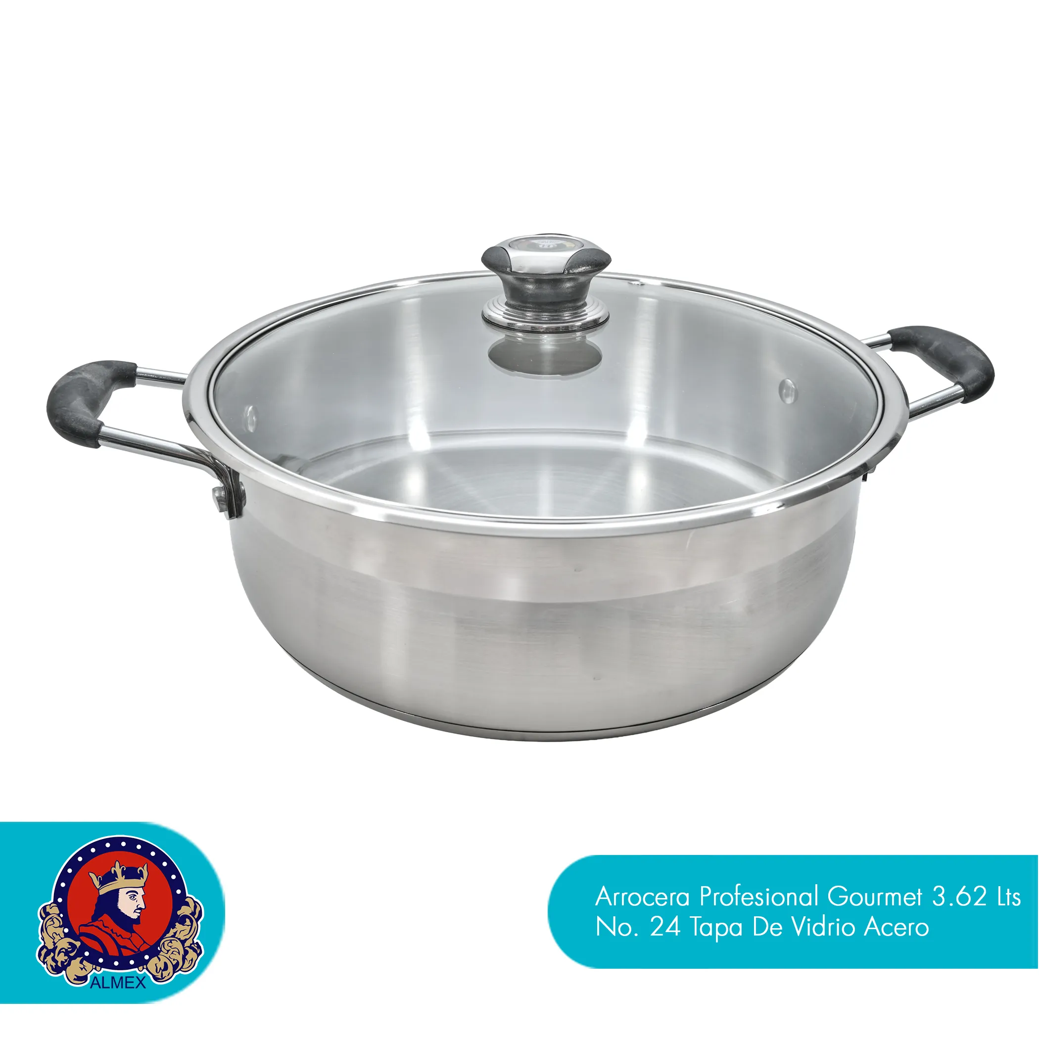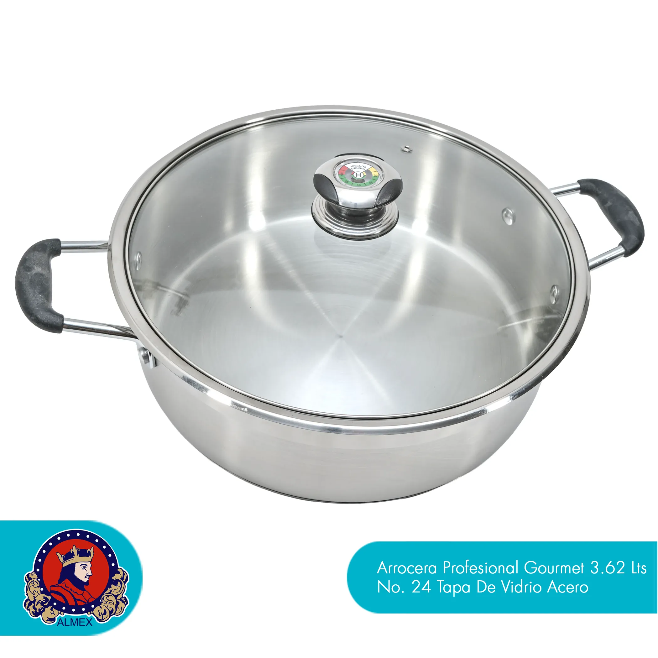 Arrocera Profesional Gourmet 24 cm de Acero Grado Quirúrgico con Tapa de Vidrio – 3.62 L